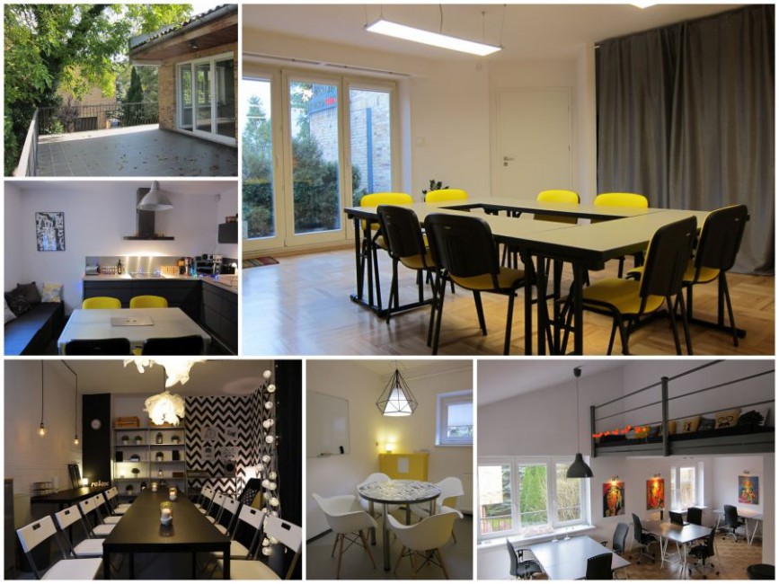 Zacznijmy od rowerów należących do biura coworkingowego Busy Bee, którymi możesz bezpłatnie poruszać się po okolicy, gdy najdzie Cię ochota na przejażdżkę. Przejdźmy do oryginalnej przestrzeni zaprojektowanej z polotem i fantazją. Nie zapomnijmy o odpoczynku na najwyższej kondygnacji Busy Bee, wyposażonej w materace i wiszący fotel brazylijski, a także strefie chllout, gdzie też znajduje się kuchnia. No i konkret – sala kameralnych spotkań w gronie 4 osób oraz sala konferencyjna dla 25 osób, z wyjściem do ogrodu. A to wszystko w spokojnej części Saskiej Kępy. Co robić po szkoleniach? Jego uczestnicy mogą zrelaksować się w należącym do Busy Bee ogrodzie lub pobrać klucz do Tajemniczego Ogrodu z drugiej strony ulicy. A w nim – minipark z pięknym starodrzewem. Oczywiście można również pomyśleć o wynajęciu biurka lub biura na miejscu i pracy w sprzyjających skupieniu okolicznościach.