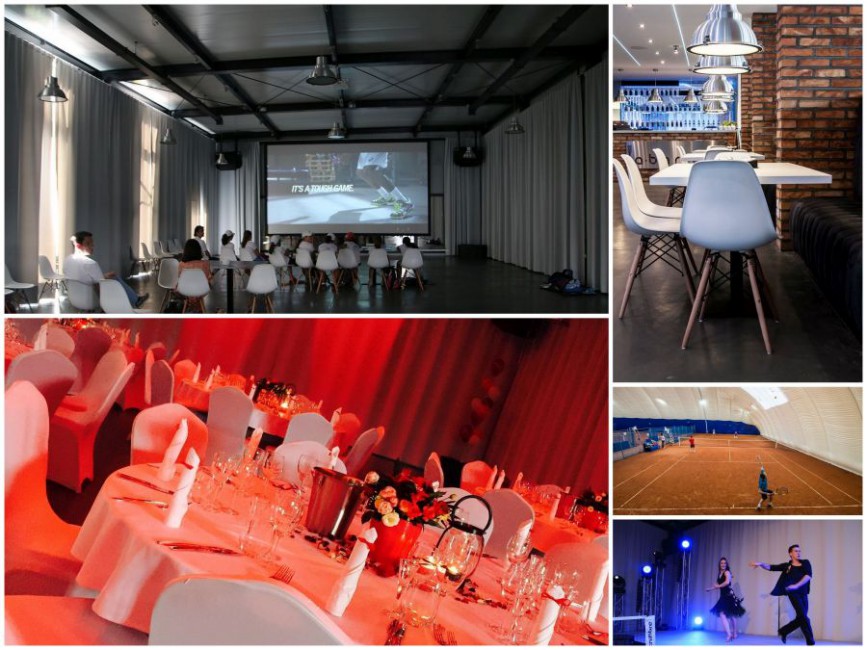 Chcesz poczuć się jak nasi reprezentanci, walczący na kortach Wimbledonu czy Roland Garros? Nie ma lepszego sposobu, by nawiązać do sukcesów Agnieszki Radwańskie lub Łukasza Kubota, niż zorganizować event lub spotkanie firmowe w klubie tenisowym. 2 klimatyzowane sale o pojemności 200 i 400 mkw. posłużą jako miejsce zarówno konferencji prasowej, jak i sympozjum czy bankietu. Ściany sal wykończono materiałem ułatwiającym szybkie odcięcie wnętrza od światła dziennego. Sale można wyposażyć w część sceniczną i tym samym przystosować do organizacji koncertu dla odpowiednio 300 i 700 osób. Personel klubu przygotuje odpowiednią scenografię wydarzenia, działająca na terenie obiektu restauracja Baracca zapewni obsługę barmańską, kelnerską oraz gastronomiczną w duchu nowoczesnej interpretacji kuchni polskiej. Goście Klubu mogą także skorzystać z oferty warsztatów kreatywnych, psychologicznych i rozwojowych, a miłośnicy sportowego wysiłku – z siłowni oraz lekkoatletycznego stadionu.