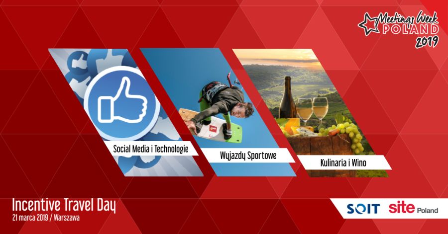 Drugi dzień wypełnią sesje przygotowane przez Stowarzyszenie Branży Eventowej oraz Stowarzyszenie Organizatorów Incentive Travel SOIT i SITE Poland. W programie znalazło się również miejsce dla spotkania Convention Bureaux, koordynowanego przez Polską Organizację Turystyczną i jej Poland Convention Bureau. Wiodącym zagadnieniem będzie międzynarodowa perspektywa rozwoju event marketingu oraz współpraca w branży. Wśród gości znajdą się przedstawiciele Niemiec, Francji, Anglii, Czech i krajów skandynawskich. Prowadzący przedstawią charakterystykę poszczególnych rynków, ukażą możliwości kooperacji, styl komunikacji i różnice kulturowe. Gościem konferencji Incentive Travel Day będzie podróżnik, mistrz kitesurfingu Victor Borsuk, który opowie, jak dobrze przygotować się do organizacji wyjazdu incentive z elementami sportowymi. Motywem przewodnim tegorocznego spotkania będą social media i nowe technologie w projektach incentive. Eksperci i praktycy podzielą się wiedzą, jak przy użyciu mediów społecznościowych, w oparciu o dobrze zdefiniowaną strategię, budżetowanie i właściwie dobrane narzędzia zrealizować założone cele. Uczestnicy dowiedzą się też więcej o wyjazdach incentive o tematyce kulinarnej i enologicznej. Część "kulinaria i wino" odbędzie się w formie prezentacji i rozmów z zaproszonymi gośćmi specjalnymi - Carlosem Echapresto, jednym z najbardziej znanych hiszpańskich somellierów, dziennikarzem i ekspertem Wojciechem Giebutą i innymi. Po części teoretycznej przyjdzie czas na część praktyczną, czyli degustację win i przekąsek.