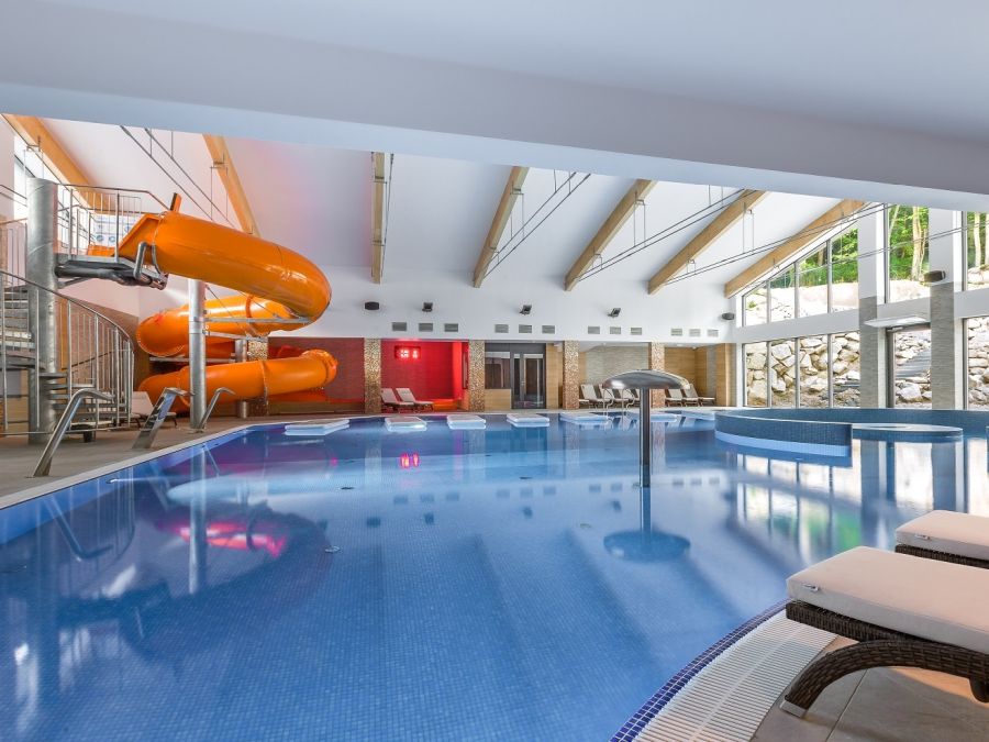 Zacznijmy od rekreacji. Blue Mountain Resort zaprasza do aquaparku, który tworzą: na zewnątrz - duży basen odkryty, basen dla dzieci (oba z podgrzewaną wodą), 2 wanny jacuzzi, oraz basen wewnętrzny ze zjeżdżalnią multimedialną, stanowiskami do hydromasażu, przeciwprądami i sztuczną rzeką. Z basenu można schodami przejść na poziom -1, gdzie znajduje się strefa relaksu. Luksusowe wnętrza z podświetlanym sufitem przypominającym rozgwieżdżone niebo, marmurowym wykończeniem, dwiema wannami jacuzzi, sauną fińską i sauną do rytuałów, biosauną ze słoneczną łąką, infrared oraz łaźnią parową. Czego chcieć więcej po długim dniu pracy? Może więcej sportu. W sezonie zimowym aparthotel prowadzi własną wypożyczalnię nart, a także szkółkę narciarską dla dzieci. Gdyby dorośli równiez chcieli pobrać kilka lekcji, na pewno będzie to możliwe. Na terenie kompleksu działa również dobrze wyposażona siłownia, w której swoje treningi przed walkami odbywa sam Tomasz Adamek. A gdybyśmy nie mieli okazji spotkania idola podczas ćwiczeń, do większego zapału podczas treningu zmotywować mogą cytaty z wypowiedzi boksera, które zdobią ściany siłowni. Ale, chcieliśmy się integrować. Jaką ofertę dla grup zorganizowanych ma Blue Mountain Resort? Zaraz przy budynku głównym znajduje się Mountain Lounge – wiata grillowa, czynna cały rok, do której można zaprosić zespół na zabawę połączoną z degustacją dań z rusztu. Za budynkiem do dyspozycji organizatorów spotkań jest teren zielony (120-150 mkw.), na którym można przeprowadzić zajęcia team-buildingowe. Obok znajduje się mały stok czynny w okresie zimowym. Chcielibyście podwższyć grupowe morale? Zaproście swoich współpracowników na masaż. Blue Mountain Resort w ramach SPA oferuje relaksujące masaże dla grup zorganizowanych, dla maksymalnie 6 osób. A może zajęcia z jogi SUP, uprawianej w wodzie? Przy wyborze tej opcji z atrakcji mogą korzystać grupy po 8 osób. Jesteśmy w Szklarskiej Porębie, z której poza wycieczkami górskimi, w standardowej ofercie znajdują się wyprawy do naszych sąsiadów. Aparthotel na życzenie pomoże w zorganizowaniu wyjazdu m.in. do Pragi lub Saksonii Szwajcarskiej.