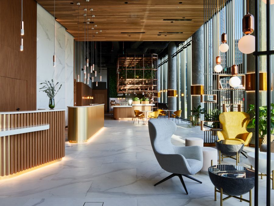 W hotelu Crowne Plaza Warsaw - The HUB nic nie jest przypadkowe. Każdy zastosowany detal nawiązuje do całościowego zamysłu projektu, a wnętrza w pełni wykorzystują potencjał atrakcyjnej lokalizacji. Postawiono na wielofunkcyjność, komfort, zapewnienie dogodnych warunków do pobytu zarówno indywidualnego, jak i grupowego. Goście przebywając na różnych kondygnacjach obiektu, nie tracą z oczu tego, co jest jego niewątpliwym atutem - pięknego widoku na panoramę miasta.