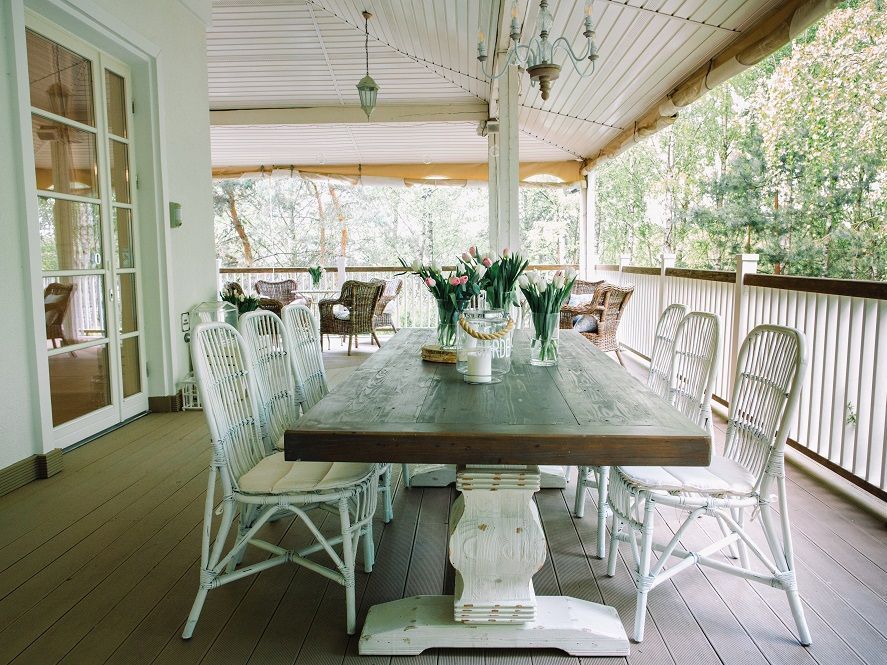 Odmieniono taras zewnętrzny, który obecnie utrzymany jest w klimacie francuskiej werandy, z dużym, drewnianym stołem. Na 250 mkw. powierzchni można tu zaaranżować zarówno kolacje grillowe w bardziej swobodnej atmosferze, jak i uroczyste imprezy okolicznościowe i spotkania biznesowe na maksymalnie 40 osób. Na potrzeby wydarzeń z większą liczbą uczestników oddana jest także znajdująca się w pobliżu tarasu zadaszona chata grillowa, z możliwością podniesienia boków.