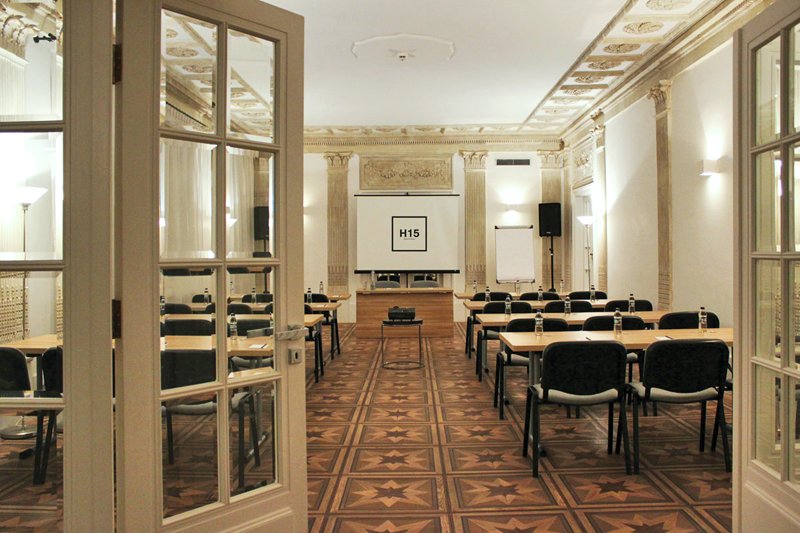 Zaplecze konferencyjne hotelu H15 jest bardzo zróżnicowane. Zaspokoi potrzeby każdego eventu. Na organizację konferencji i spotkań biznesowych przeznaczonych jest tu pięć różnych przestrzeni. Pierwszą z nich, najbardziej klasyczną, jest Sala Historyczna. Mierzy ona 90 mkw., jednocześnie pomieści 70 osób w ustawieniu teatralnym. Znajdująca się na pierwszym piętrze Sala Historyczna charakteryzuje się oryginalnym parkietem i ornamentami. Wyposażona jest w sprzęt multimedialny, bezprzewodowy Internet oraz klimatyzację. Drugim, mniej standardowym, wyjątkowo ciekawym i niezwykle efektownym miejscem na bankiety, konferencje czy wystawy jest 220-metrowe, całkowicie przeszklone patio.