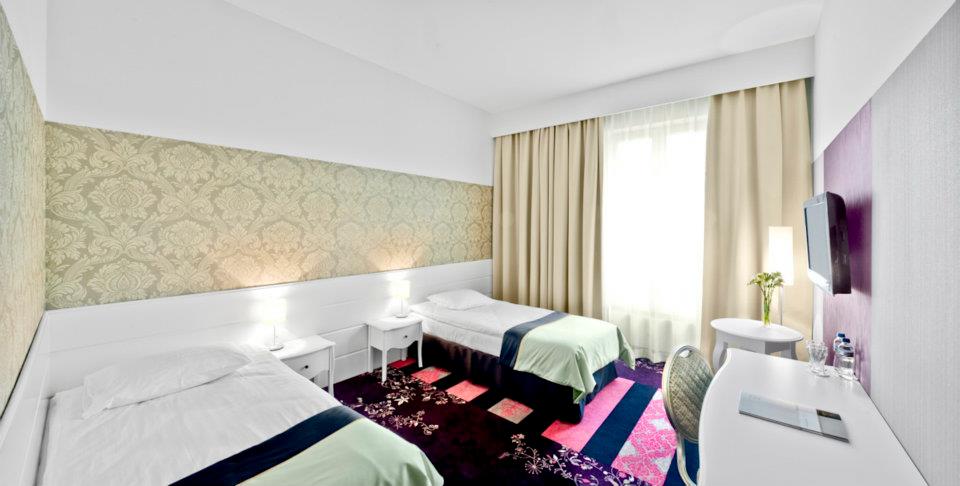 Hotel oferuje 199 miejsc noclegowych w 102 pokojach, rozlokowanych na trzech piętrach. Pokoje również mają w wystroju elementy secesyjne, są przytulne i jasne, z białymi meblami i oryginalnymi ornamentowanymi tapetami. W każdym pokoju jest łazienka z suszarką, telewizor LCD, biurko, krzesło i dostęp do Internetu.