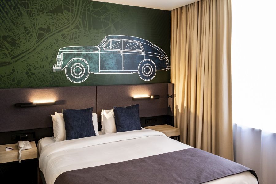 Aktualnie renowację przechodzą pokoje mock-up, które zaprezentują się w nowej palecie barw – złocie lub, w drugiej wersji, butelkowej zieleni. Również i w nich widoczne są motoryzacyjne inspiracje oraz dekoracje nawiązujące do historii miasta.