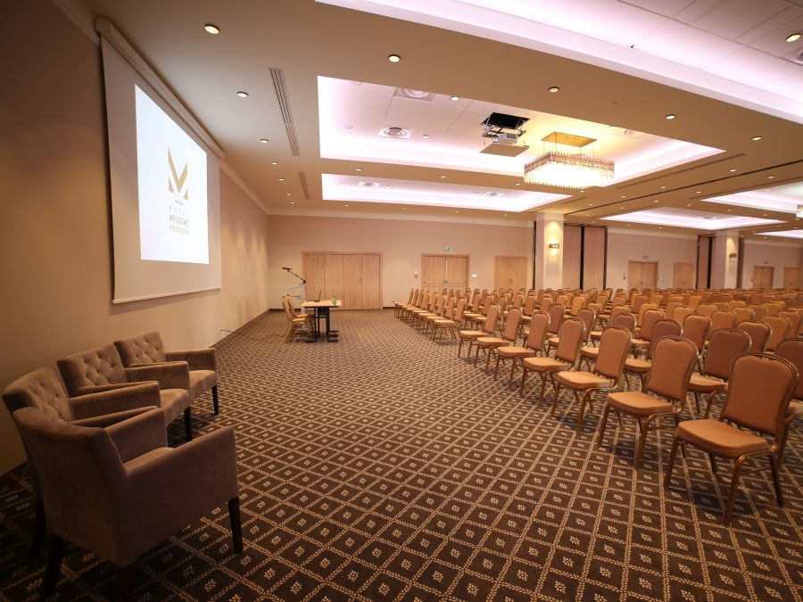 Na początku roku do 7 działających sal konferencyjnych i szkoleniowych dołączyła nowa, wielofunkcyjna przestrzeń o powierzchni 525 mkw. oraz wysokości 3,8 m. W ustawieniu teatralnym pomieści ona 500 osób, a podczas bankietu zasiądzie w niej 280 gości. Salę podzielić można na trzy mniejsze, odpowiednie na konferencje dla 140 osób. Wszystkie wyposażone zostały w profesjonalny sprzęt multimedialny: nagłośnienie, rzutniki i ekrany. W przestrzeniach zamontowano elektryczne zasłony, umożliwiające pełne zaciemnienie. Z sal można wyjść na taras z widokiem na jezioro Czos. Nowa przestrzeń konferencyjno-eventowa dostosowana została do organizacji bankietów, pokazów czy prezentacji. Dużym udogodnieniem jest niezależne wejście, do którego został doprowadzony podjazd na poziomie sal konferencyjnych.