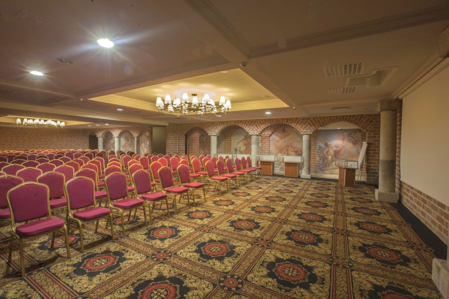 Bez ludzi nawet najpiękniejszy hotel to tylko mury. Wiedzą o tym w Hotelu St. Bruno i zachęcają do organizowania kameralnych spotkań biznesowych, imprez okolicznościowych i warsztatów w swoich przestrzeniach eventowych. Jeśli poszukujesz miejsca na konferencje na Mazurach, dobrze wyposażonego i w atrakcyjnej lokalizacji, znajdziesz je właśnie w Giżycku. Hotel St. Bruno oferuje 3 sale konferencyjne, które łącznie pomieszczą ponad 300 osób. Usytuowane w podziemiach zamku sale: St. Bruno 1, o powierzchni 93 mkw. oraz St. Bruno 2, o powierzchni 135 mkw., znakomicie się sprawdzą przy szkoleniach po 140 uczestników w ustawieniu teatralnym. Obie, elegancko wykończone sale, można połączyć w jedną dużą przestrzeń na uroczyste gale, bankiety i sympozja. Dodatkowo, na przerwę kawową lub networking można wykorzystać znajdujące się przed salami foyer. Na narady, zebrania i warsztaty z widokiem na Kanał Łuczański zarezerwujesz kameralną salę VIP – Łuczańską (30 mkw.). Wszystkie przestrzenie są klimatyzowane, wyposażone w profesjonalne nagłośnienie, rzutniki z ekranami, flipcharty, a uczestnicy wydarzenia mogą korzystać z bezprzewodowego Internetu.