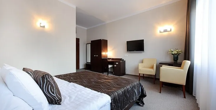Położony w bezpośrednim sąsiedztwie dawnego kompleksu zdrojowego Hotel Trzebnica udostępnia 60 pokoi hotelowych: 41 z nich to pokoje dwuosobowe z pojedynczymi łóżkami, a 19 kolejnych to pokoje ze złączonymi łóżkami. W obiekcie znalazły się również trzy apartamenty. Każdy pokój posiada klimatyzację.