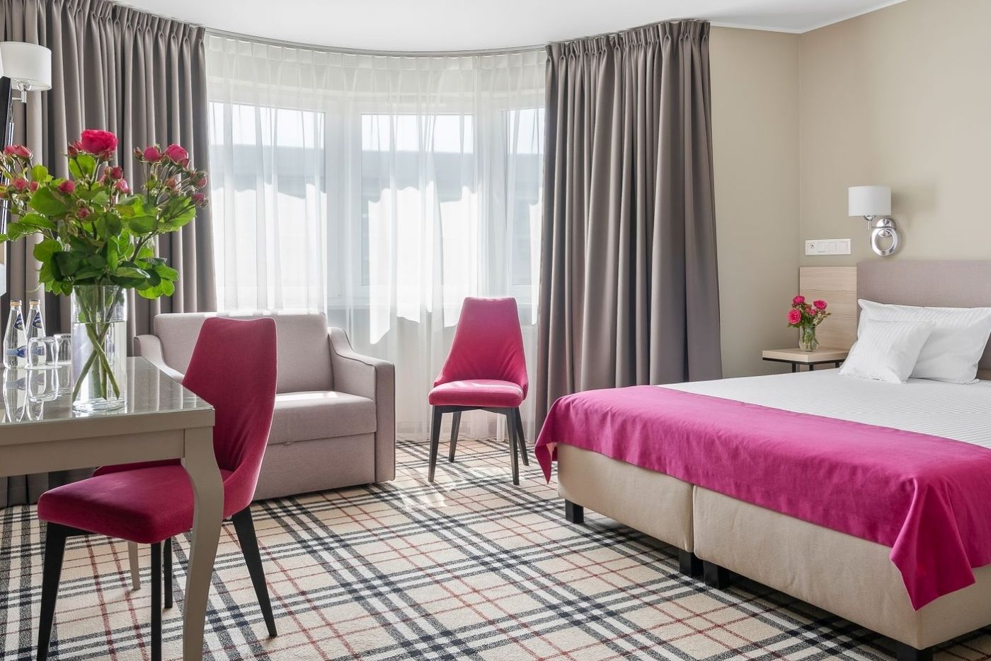 Nie tylko sale konferencyjne wyróżniają się eleganckim wystrojem. Podobnie jest z zapleczem noclegowym hotelu. 75 pokoi i apartamentów dostępnych jest w kilku standardach, które dopasujemy do potrzeb gości. Wszystkie wyposażono w indywidualnie sterowaną klimatyzację, nastrojowe oświetlenie, ergonomiczne biurko oraz łazienki z wanną lub prysznicem. Podobnie jak sale konferencyjne, pokoje są dobrze wyciszone. Można w nich zakwaterować do 164 osób.
