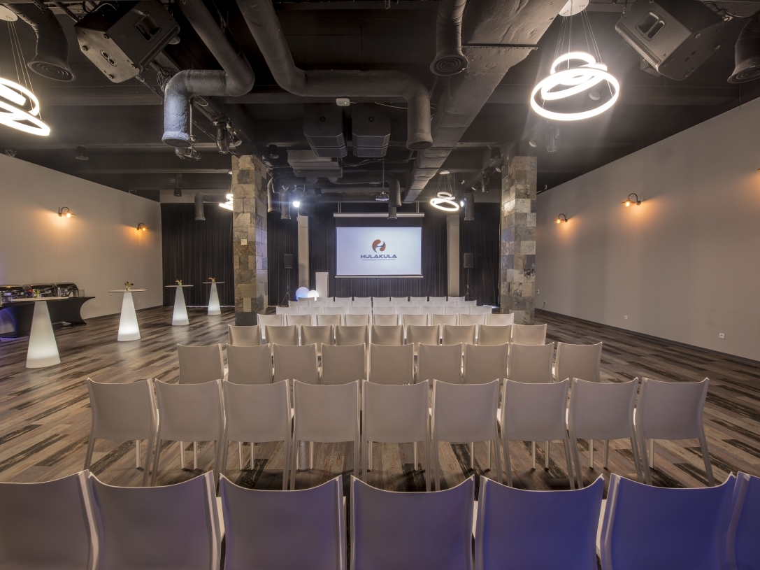 W Hulakula organizatorzy spotkań biznesowych mogą wynająć salę konferencyjno-klubową o powierzchni 220 mkw., która pomieści 150 osób w ustawieniu teatralnym. Ulokowana jest w głębi obiektu, za restauracją. Sala jest przestronna, z 4 kolumienkami, barem, lustrem na jednej ze ścian i z wyjściem na letni ogródek. Można tu ustawić scenę o powierzchni 4,5 mkw. i przygotować minikoncert lub występ artystyczny. Profesjonalnie wyposażona (wysuwany ekran projekcyjny o wymiarach 3500 x 2000 mm, rozdzielczość 16:9) sala ma dostęp do światła dziennego oraz możliwość zaciemnienia podczas projekcji. Przerwę kawową można zaaranżować pod ścianą obok baru lub przenieść na zewnątrz do foyer, z którego można przejść do ogródka lub do VIP roomów.