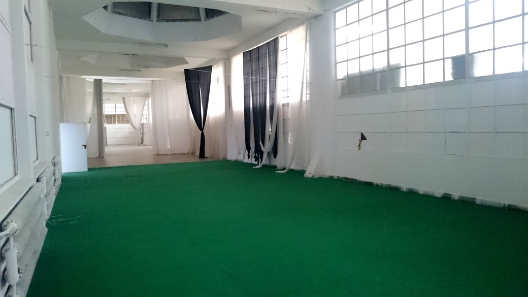 Sala 2 w Mińskiej 65. Zielona wykładzina jest opcjonalna. Podłoga może też nie być niczym przykryta.