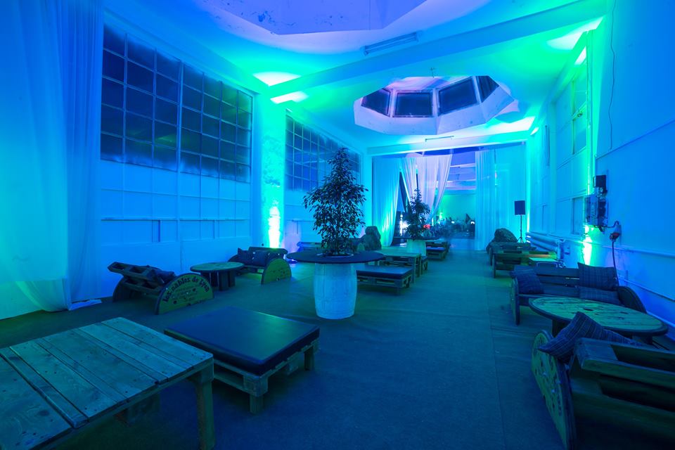 Pomieszczenie jest bardzo widne – okna sięgają od wysokości 1,5 m niemal do sufitu, ponadto światło wpada też przez okna dachowe, umieszczone wokół wielokątnych świetlików. Na potrzeby eventów okna i ściany mogą być zasłonięte kotarami, natomiast świetliki organizator wydarzenia musiałby zasłonić we własnym zakresie. Sala ma gładką, wybetonowaną, szarą podłogę. Prezentuje się bardziej elegancko od sali głównej. Bez specjalnej oprawy i dodatkowych elementów wystroju można tu zorganizować zarówno konferencję, jak i bankiet. Z tej sali prowadzi też wyjście na niewielki taras i teren zielony.
