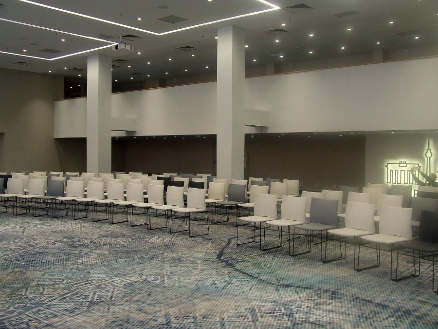 Na poziom C, gdzie znajduje się strefa biznesowa Novotelu, dostaniemy się 4 windami lub schodami wewnątrz i na zewnątrz budynku. 1200 mkw. powierzchni części konferencyjnej zapewnia Novotelowi drugie miejsce pod względem wielkości sal dostępnych na konferencje i eventy w Wielkopolsce. Z wind wychodzi się do przestronnego foyer (jednego z kilku), które można wykorzystać podczas przerwy kawowej. Główną ozdobą tej przestrzeni jest miedzioryt – pamiątka z pierwszych lat funkcjonowania obiektu. Przez hol przechodzimy do jednej z największych sal – Amsterdam. Łącznie w Novotelu znajdziemy ich 7. 3 duże sale, mieszczące po kilkuset uczestników wydarzenia, oraz 4 mniejsze na imprezy poniżej 50 osób. Sala Amsterdam (264 mkw.) pomieści 250 gości w ustawieniu teatralnym. W tym wnętrzu dominują szarości, przełamane żywszą kolorystyką foteli i kanap o oryginalnej formie. Sala Rotterdam (330 mkw.) doskonale sprawdzi się podczas koncertu, gali rozdania nagród czy promocji produktu. W tym celu można ustawić w niej dużą scenę o wysokości 45 cm, zaaranżować wybieg na pokaz mody, podczas prezentacji wykorzystać 2 wielkie opuszczane elektrycznie ekrany, a w którejś z mniejszych sal, np. Oslo, przygotować pokój techniczny lub garderobę dla artystów. Sala Rotterdam, podobnie jak pozostałe przestrzenie, pozbawiona jest sufitu akustycznego, dzięki czemu uzyskano imponującą wysokość ścian – 4,5 m, nie tracąc przy tym na jakości nagłośnienia. Industrialny wygląd podkreśla nowoczesne oświetlenie, a wykładziny ocieplają surowe wnętrze.