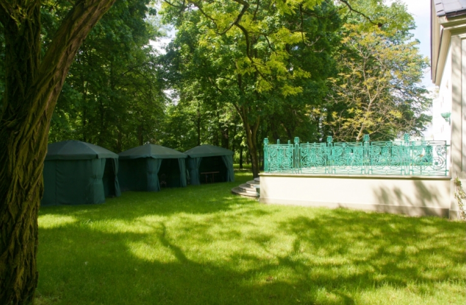 Klimatyczne piwnice, rozciągające się pod całym pałacem. Są przestronne i puste, można więc je dowolnie zaaranżować i zorganizować atrakcje dla grup konferencyjnych niezależnie od pogody. Taras prowadzi do parku, gdzie można zorganizować plenerowy event wśród zieleni.