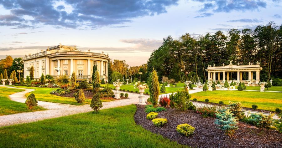 Trudno nie zauważyć stylowy budynek o białej fasadzie, z portykiem i kolumnami. Pałacyk zdobi belweder z tarasem. Obiekt otacza zadbany ogród wraz z altaną. Wnętrza utrzymane są w jasnej kolorystyce i harmonizują z architekturą budynku. Marmurowe wykończenie, kryształowe żyrandole, kolumny, wreszcie kręte schody z kutymi balustradami i poręczami, to wszystko tworzy wyjątkowy pałacowy klimat. Przy wejściu, z lewej strony, wydzielone zostało miejsce na szatnię, zaś na wprost znajduje się recepcja. Na parterze usytuowane są także sale konferencyjne oraz restauracja.