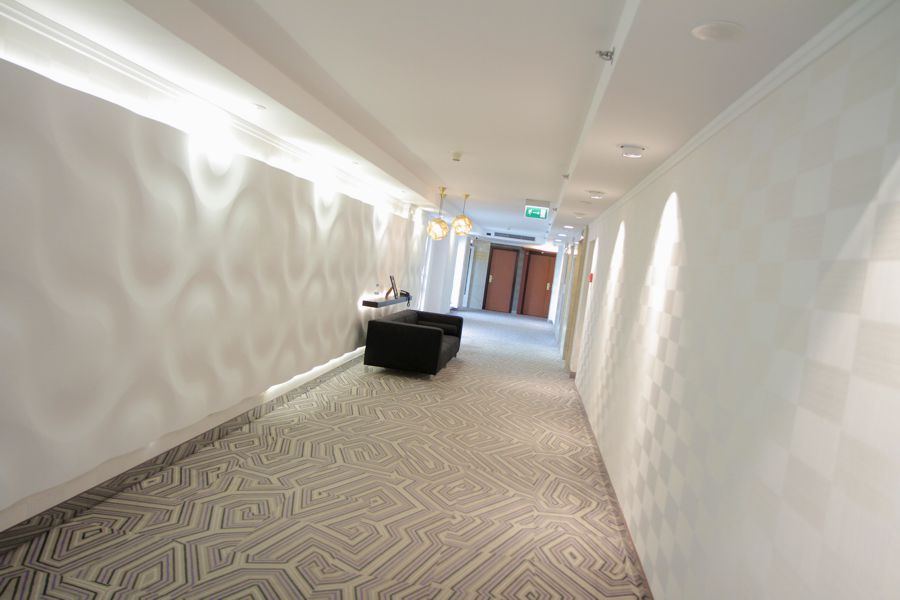 Hotelowe korytarze w zmodernizowanej części obiektu wyglądają świeżo i przestronnie.. Za wystrój części wspólnych, w tym korytarzy i lobby odpowiedzialny znany francuski architekt Didier Gomez.