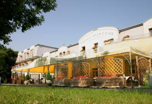 Termy Pałacowe oferują 138 miejsc noclegowych w 70 pokojach o zróżnicowanym standardzie. Rozmieszczone są one na 3 kondygnacjach - parterze, pierwszym i drugim piętrze. Pomieszczenia na najwyższej kondygnacji mają sufity ze skosami. Pokoje 1- i 2-osobowe standard (50 pokoi) z pojedynczymi łóżkami odpowiadają dobremu standardowi 3-gwiazdkowemu. Są czyste, widne i urządzone w stonowanych barwach. Mają niewielkie, ale zadbane i czyste łazienki z prysznicami. Na wyposażenie pokoju składa się mały stolik z dwoma krzesłami, szafka z telewizorem kineskopowym, nocne szafeczki z lampkami i szafa. Część pokoi ma nieduży balkon. Trzy spośród pokoi standard przystosowane są dla osób niepełnosprawnych. Pokoje dwuosobowe o podwyższonym standardzie (13 pokoi Lux) są nieco większe i również odpowiadają standardowi trzech gwiazdek. Apartamenty (4 pokoje) bliższe są standardowi czterogwiazdkowemu. Są znacznie obszerniejsze i nieco nowocześniej urządzone. W ich wyposażeniu oprócz stolika z krzesłami jest również biurko, duży telewizor LCD i czajnik elektryczny. W dużych łazienkach goście mogą relaksować się w wygodnych wannach i korzystać z suszarki do włosów. Apartamenty VIP (3 apartamenty) natomiast składają się z części dziennej - wypoczynkowo-biznesowej i sypialni.