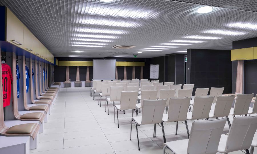 Co wyróżnia spotkania organizowane na Stadionie Poznań? Jest to pierwsze tematyczne centrum konferencyjne w Wielkopolsce! Spotkania tu przygotowywane odbędą się w jedynej w swoim rodzaju atmosferze. Uczestnicy konferencji i szkoleń będą mieli okazję poznać dobrze miejsce, gdzie ćwiczą piłkarze, pracują trenerzy oraz dziennikarze. Chcesz zrobić wrażenie na pracownikach firmy? Zaaranżuj zebranie w Szatni Lecha, która w układzie teatralnym pomieści 60 osób. Sala jest klimatyzowana, z dostępem do WiFi, wyposażona w ekran, projektor multimedialny, nagłośnienie i tablicę.
