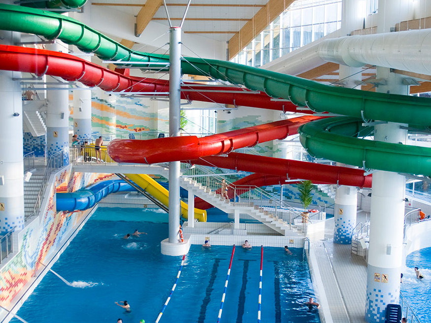 Strefa basenowa w Aqua Park obejmuje również takie atrakcje jak otwarta niedawno huśtawka wodna, z której skorzysta kilka osób jednocześnie. Mogą one, huśtając się, wywołać falę nawet do 70 cm wysokości. Dużo frajdy sprawi też Dzika Rzeka, w której korycie płynie woda, przyspieszająca od czasu do czasu, w czym przypomina nurt górskiego potoku. Goście kompleksu ucieszą zjeżdżalnie, w których podczas zjazdu osiąga się prędkość do 26 km/h, a dla tych, co preferują spokojniejsze formy relaksu – tradycyjne wylegiwanie się w jacuzzi. Poziom 3 Aqua Park to kolejna dawka przyjemności: w pełni zautomatyzowana z systemem komputerowym kręgielnia, sala zabaw dla najmłodszych oraz Aqua Bar, gdzie podniebienie ucieszy domowa kuchnia, dobra kawa i możliwość relaksu. A kto zmęczonemu zabroni…?