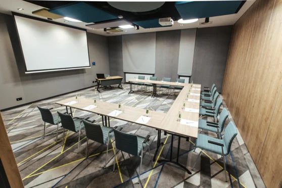 Sala usytuowana na końcu budynku z bliskim wyjściem na taras. Profesjonalnie wyposażona, sterowana za pomocą iPada, klimatyzowana. Widna dzięki dużym oknom, ale z możliwością całkowitego zaciemnienia.