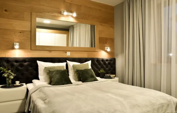 Wszystkie apartamenty mieszczą część wypoczynkową i aneks kuchenny ze zmywarką do naczyń, kuchenką mikrofalową, lodówką, płytą kuchenną, ekspresem do kawy i czajnikiem. Do dyspozycji Gości jest ponadto łazienka z bezpłatnym zestawem kosmetyków. Pościel i ręczniki są zapewnione.