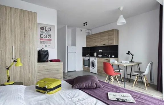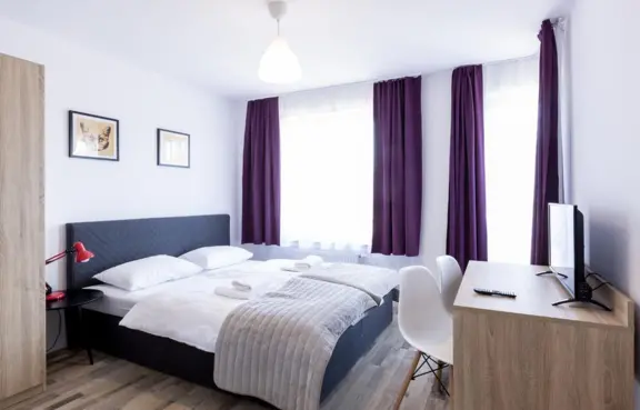 Pokoje: 233 apartamenty jedno-, dwu-, i trzypokojowe, z anekseami kuchennymi oraz łazienkami z prysznicem. Część z apartamentów ma balkony z ładnym widokiem na panoramę miasta.