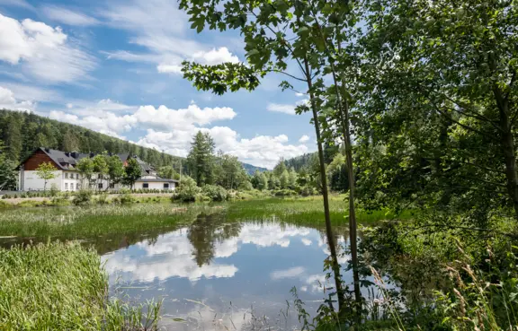 LOKALIZACJA: Hotel położony jest malowniczo w Beskidach, w otoczeniu lasów, nad rzeką Wisłą, w pobliżu Małej Zapory, około 3 km od centrum miasteczka Wisła.