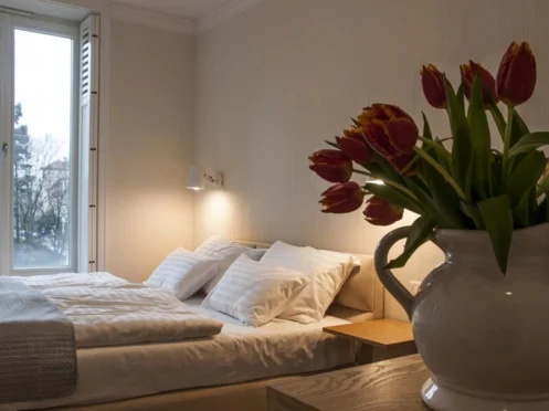 Pokoje: 17 pokoi i apartamentów jedno- i dwuosobowych.