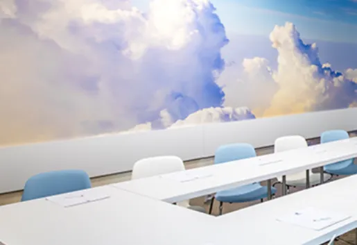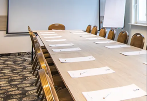 Sala E znajduje się na 10 piętrze, ma 15 m2, jeden wspólny stół. Idealna sala na warsztaty i pracę w grupie.