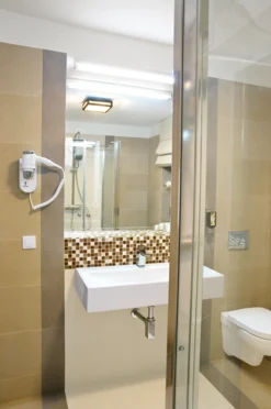 120 miejsc noclegowych w 82 komfortowych pokojach wyposażonych w klimatyzację, dostęp do Internetu, TV. Perełką sa cztery gustownie urządzone apartamenty.