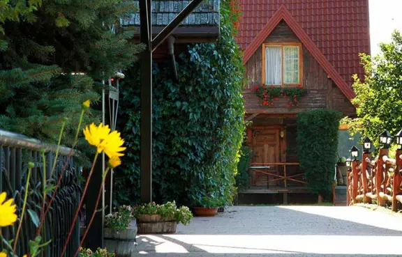 Architektura: obiekt, utrzymany jest w stylu rustykalnym, otoczony jest zielenią.