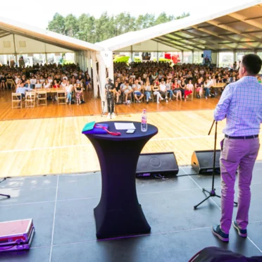 Sale konferencyjne: Centrum Eventowe Barcinek w budynku głównym udostępnia salę bankietową (180 m kw.) z antresolą (100 m kw.) - częściowo ze szklaną podłogą oraz wyjściem na taras oraz salą konferencyjną (30 m kw.). Ofertę uzupełnia pawilon letni, wyposażony w grill bar, komplety biesiadne oraz sanitariaty.