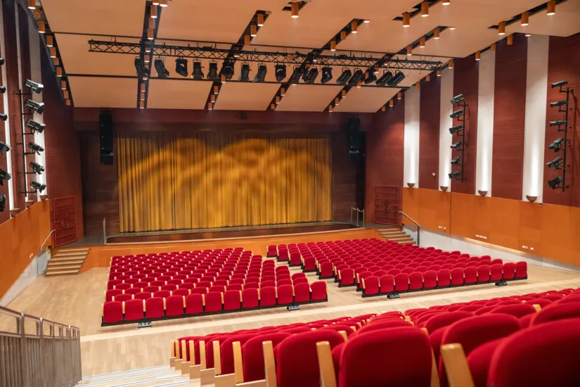 Nasza Sala Widowiskowa jest jedną z najnowocześniejszych sal koncertowych w Europie. Wyposażona została w 540 miejsc, z możliwością powiększenia widowni do 600 osób. Unikalna konstrukcja widowni pozwala na dowolną aranżację sali o powierzchni 1100 m².