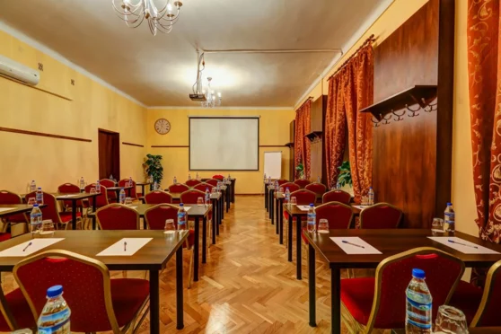 Dodatkowe usługi: obsługa techniczna - po wcześniejszej rezerwacji - podczas trwania konferencji, kabina dla tłumaczy symultanicznych.