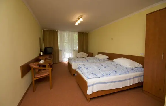 Pokoje: pokoje na 140 osób oraz doskonałe zaplecze gastronomiczne.