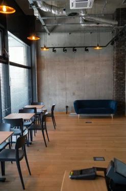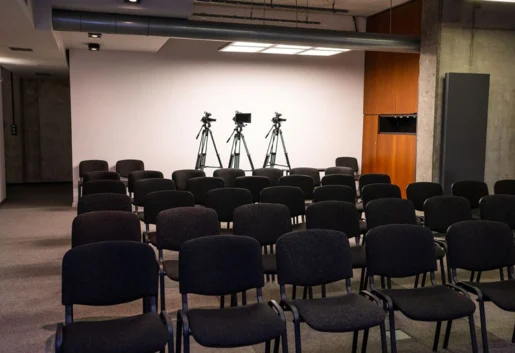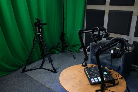 Sale konferencyjne: Centrum Kształcenia Młodzieży Kuźnia oferuje klimatyzowaną salę konferencyjną o powierzchni 85 m kw., z TV (55") na wózku, rzutnikiem i systemem nagłośnieniowym. Dodatkowo na parterze obiektu znajduje się otwarta przestrzeń o powierzchni 65 m kw., wyposażona w stoliki koktajlowe, kawiarniane oraz stoły cateringowe. Do obiektu należy również studio nagraniowe z greenscreenem, kamerami 4K, oświetleniem studyjnym, mikrofonami krawatowymi, stacją montażową i mikserem do produkcji podcastów.
