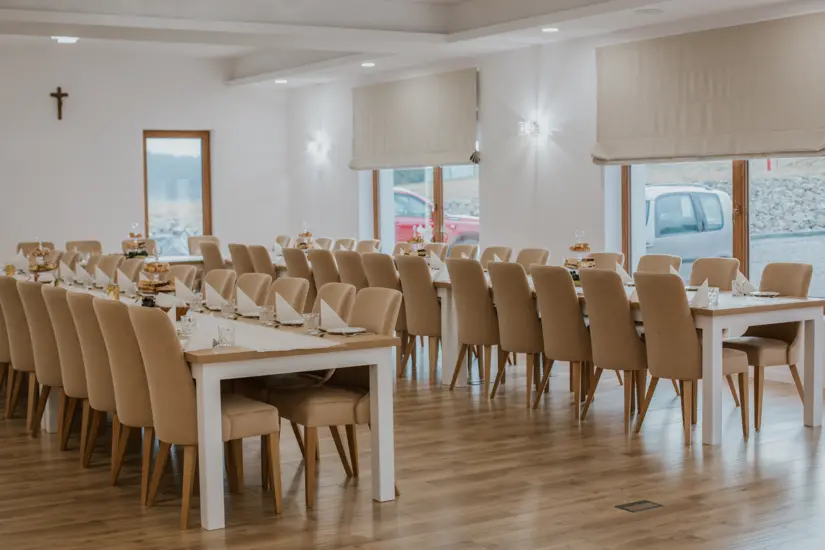 Sala konferencyjna idealna na szkolenia/konferencje dla max 60 osób. Do dyspozycji rzutnik i flipchart, zestaw do kawy i herbaty. Możliwość zamówienia wyżywienia, wycena indywidualna w zależności od liczbu osób.