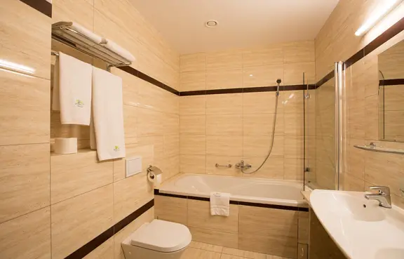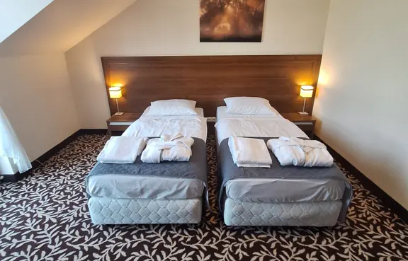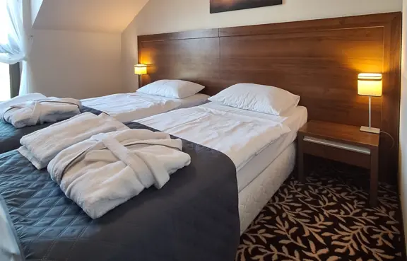 - Przestronne i komfortowo umeblowane pokoje z łazienkami, TV, telefonem, lodówką i sejfem