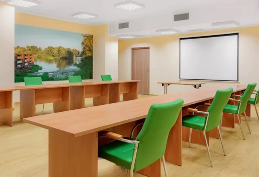Na wyposażeniu sali jest nagłośnienie, internet wi-fi, scena / podest, regulowane oświetlenie, projektor, ekran wbudowany.