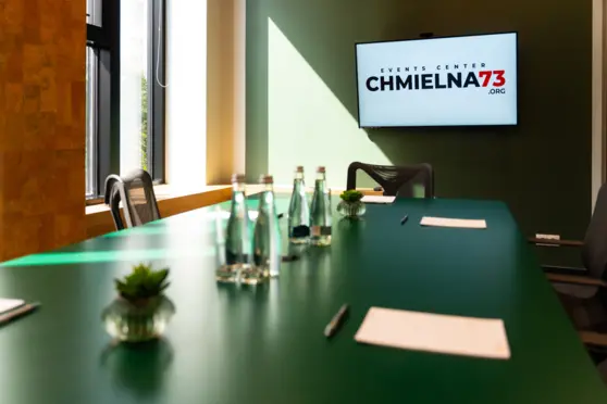 Salka znajduje się na uboczu, w spokojniejszej części Chmielnej, co daje duży komfort pracy. Idealna na spotkanie biznesowe.