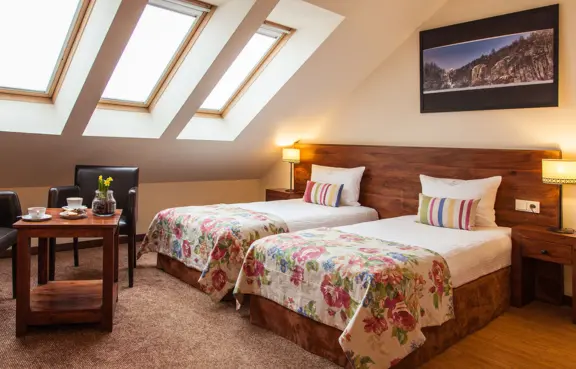 Hotel*** - który pozwoli odkryć komfort w eleganckim wydaniu. Do dyspozycji Państwa oddajemy 31 pokoi urządzonych z wielką dbałością o każdy szczegół. Wszystkie pokoje wyposażone są w łazienkę z prysznicem, klimatyzację oraz posiadają dostęp do internetu.