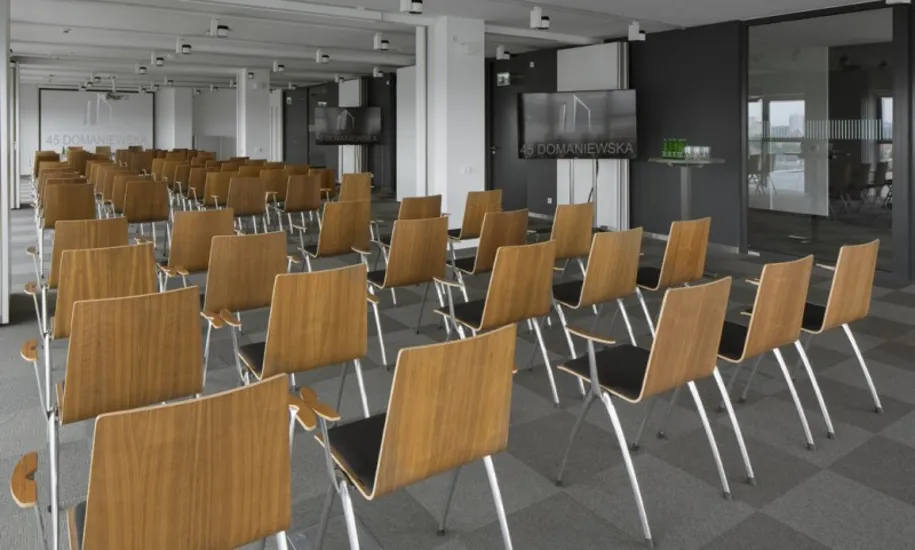 W budynku znajdują się 4 w pełni wyposażone, sale konferencyjne dzielone systemem ścian mobilnych, które w zależności od potrzeb można przygotować w różnych ustawieniach. Każda z sal konferencyjnych, zależnie od potrzeb, może być dowolnie zaaranżowana jako sala szkoleniowa, sala seminaryjna czy warsztatowa.…