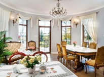 Pokoje: do dyspozycji gości oddanych jest 6 stylowych pokoi oraz 2 apartamenty, które są oddalone o 10 min drogi od dworu.