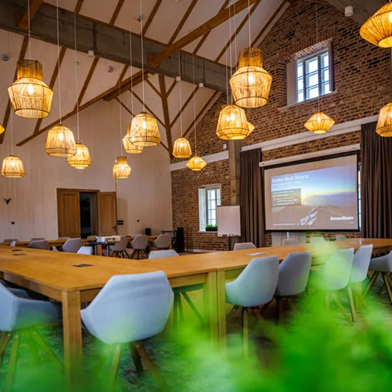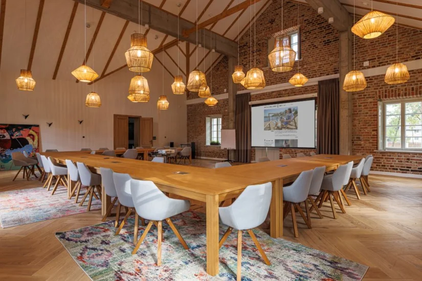 Przestronna sala konferencyjna, przystosowana do komfortowej pracy dla dwóch grup do 40 osób; wyposażona jest w wi-fi, projektor, ekran i flipcharty.