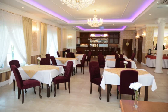 W obiekcie znajdują się dwie eleganckie sale bankietowo-konferencyjne urządzone w stylu glamour o powierzchni 100 m2 oraz 150 m2, które mogą funkcjonować łącznie jako jedna sala. Ich powierzchnia pozwala na organizację wydarzenia (w zależności od ustawienia stołów) dla 200 osób.