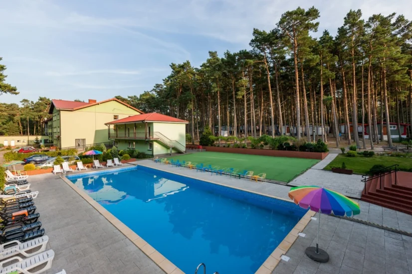 Dodatkowe usługi i atrakcje: na gości Dziejby Leśnej czekają: basen odkryty, boiska sportowe i miejsce na ognisko.