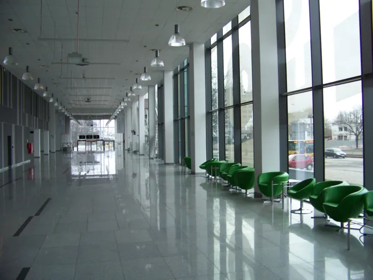 Foyer na parterze przed główną halą o powierzchni 800 m2 - które doskonale służy do organizacji przerw kawowych, lunchy czy też organizacji bankietów lub wykorzytywane być może jako przestrzeń wystaw