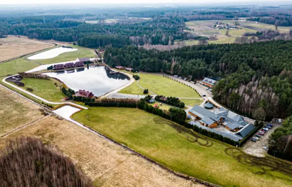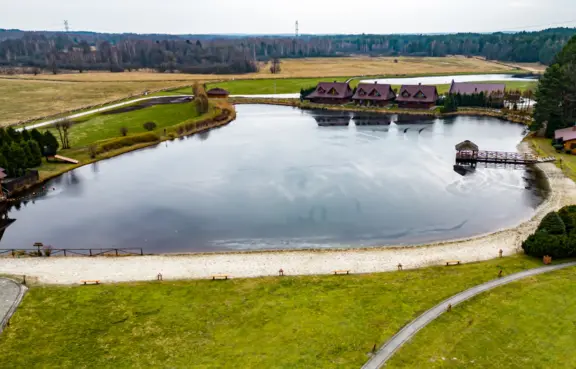Ten unikalny i pełen uroku obiekt, jest położonych w sercu kniei, na śródleśnej polanie. W naturalnym centrum znajduje się jezioro otoczone piękną piaszczystą plażą , kuszące amatorów kąpieli i wędkowania. Wokół niego znajduje się zagospodarowany teren, na którym nasi goście mogą korzystać: