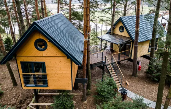 - z bazy noclegowej usytuowanej w sześciu nowoczesnych domkach wypoczynkowych,