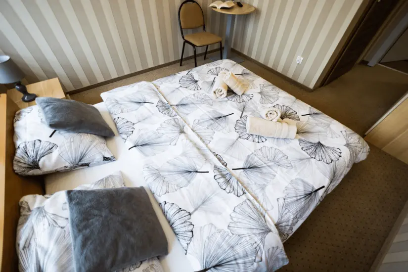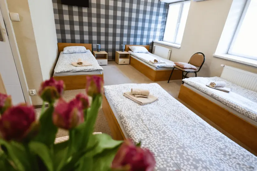 Obiekt oferuje również pokoje dwu- i czteroosobowe, które są przestronne, gustownie urządzone i wyposażone w łazienki z kabinami prysznicowymi.
